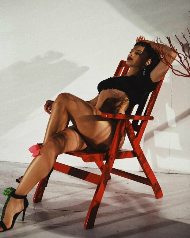 Сьогодні, 6 листопада, Мішель Андраде поділилася знімком, на якому позує в чорному кроп-топі та трусиках. Пікантний образ співачки доповнили босоніжки на шпильці, яскравий макіяж і високий хвіст.