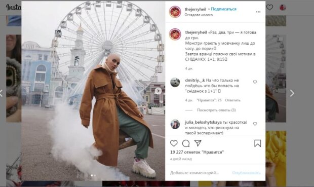 Около месяца назад певица Jerry Heil объявила себе челлендж, суть его заключалась в том что если она не похудеет за две недели, то побреет голову наголо. Через какое-то время певица все же похудела, однако, голову тоже "побрила".